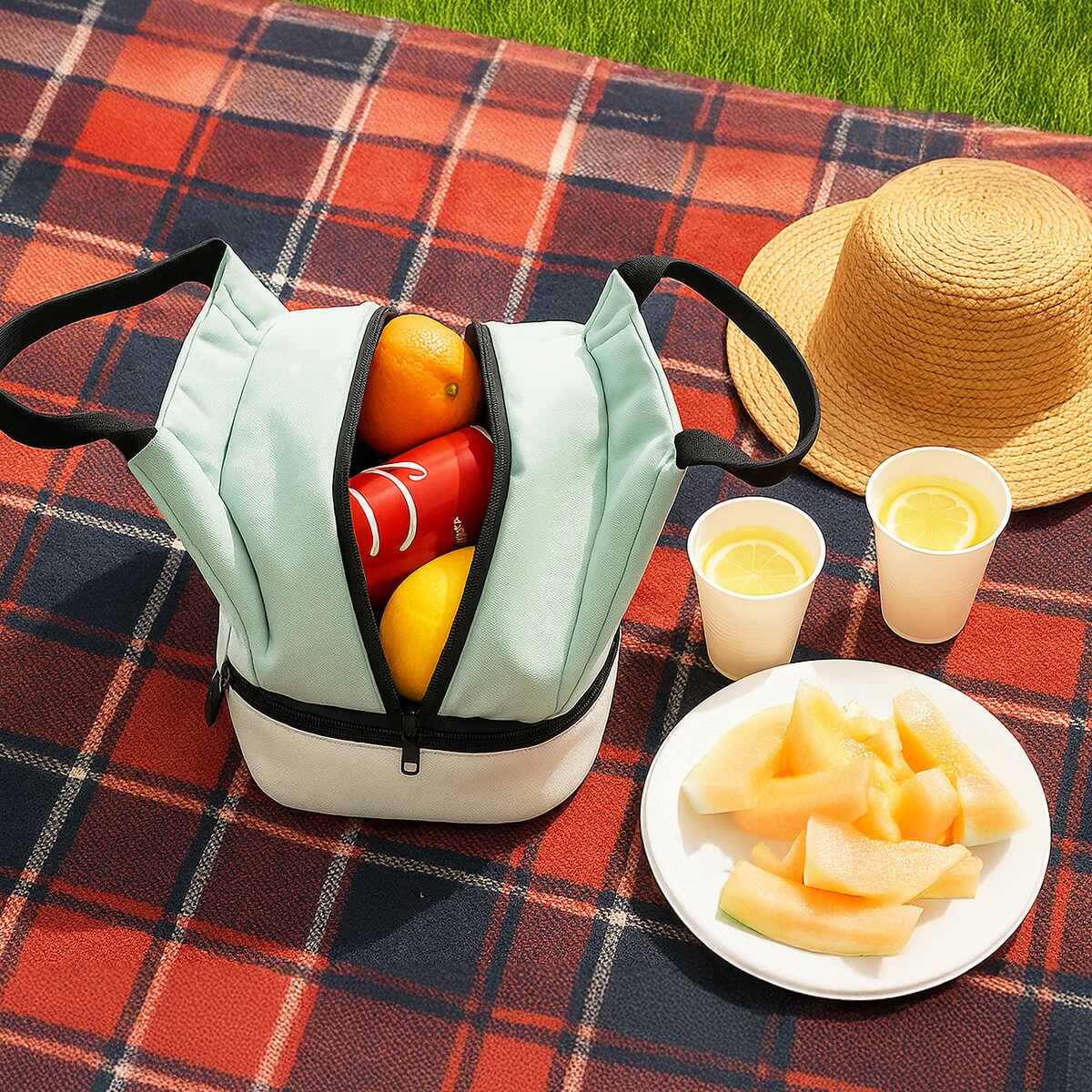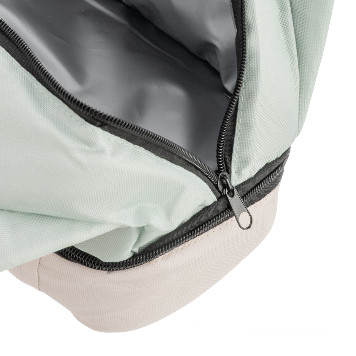 Kód produktu 731435Termobrašňa udrží vaše jedlo a nápoje dlhšie v požadovanej teplote – chladené nápoje, šaláty alebo dezerty zostanú dlhšie osviežujúce, teplé jedlo nevychladne tak rýchlo. Zaistí vám komfort stravovania na cestách. Funkčnosť termobrašny zaisťuje termoizolačná vložka. Výborne sa dovnútra zmestia fľaše, nápojové plechovky alebo plastové dózy. Uzatváranie je riešené zipsom. Taška má dve samostatné časti – dolná časť sa otvára po obvode, horná časť zhora. Praktické ucha na prenášanie zaisťujú ľahkú manipuláciu. Údržba: v prípade zašpinenia odporúčame utrieť vlhkou handričkou. Materiál: polyester (tkaná textília 600D Oxford fabric + úchytky), PEVA (strieborná fólia), penový polyetylén (výplň), polyester, plast PP a kov (jazdec). Rozmery: 24,5x14,5x20 cm. Približný celkový objem podľa rozmerov je 7 l.