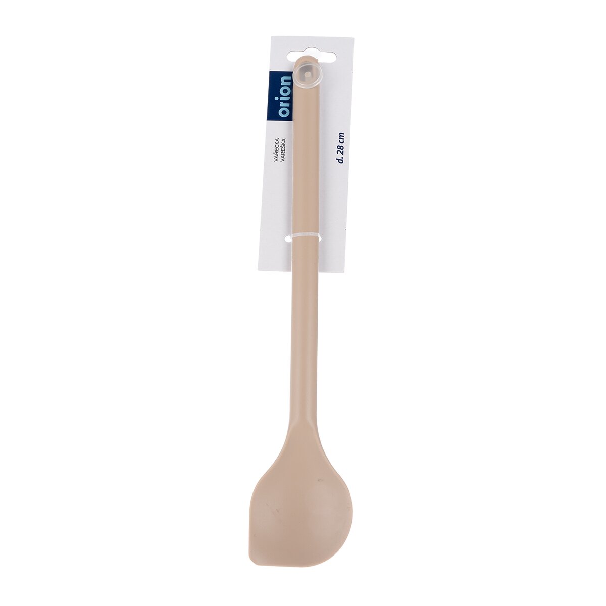 Kód produktu 140149Béžová silikónová vareška s rohom v dĺžke 28 cm s vystuženou vnútornou časťou z nylonu je základom každého varenia. Pre ľahké miešanie a vyškrabávanie omáčok, krémov, nátierok aj cesta z hrnca či misy.