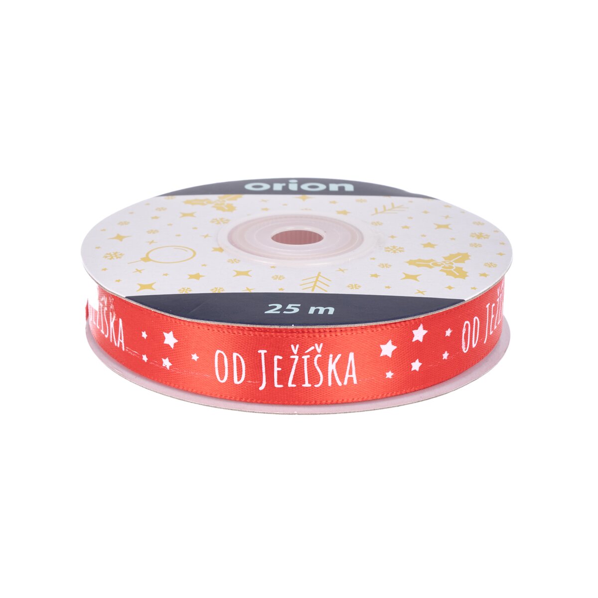 Kód produktu 823107Červená stuha s potlačou "OD JEŽÍŠKA" je určená na originálne balenie vianočných darčekov alebo na doplnenie najrôznejších vianočných dekorácií. Má dĺžku 25 m.