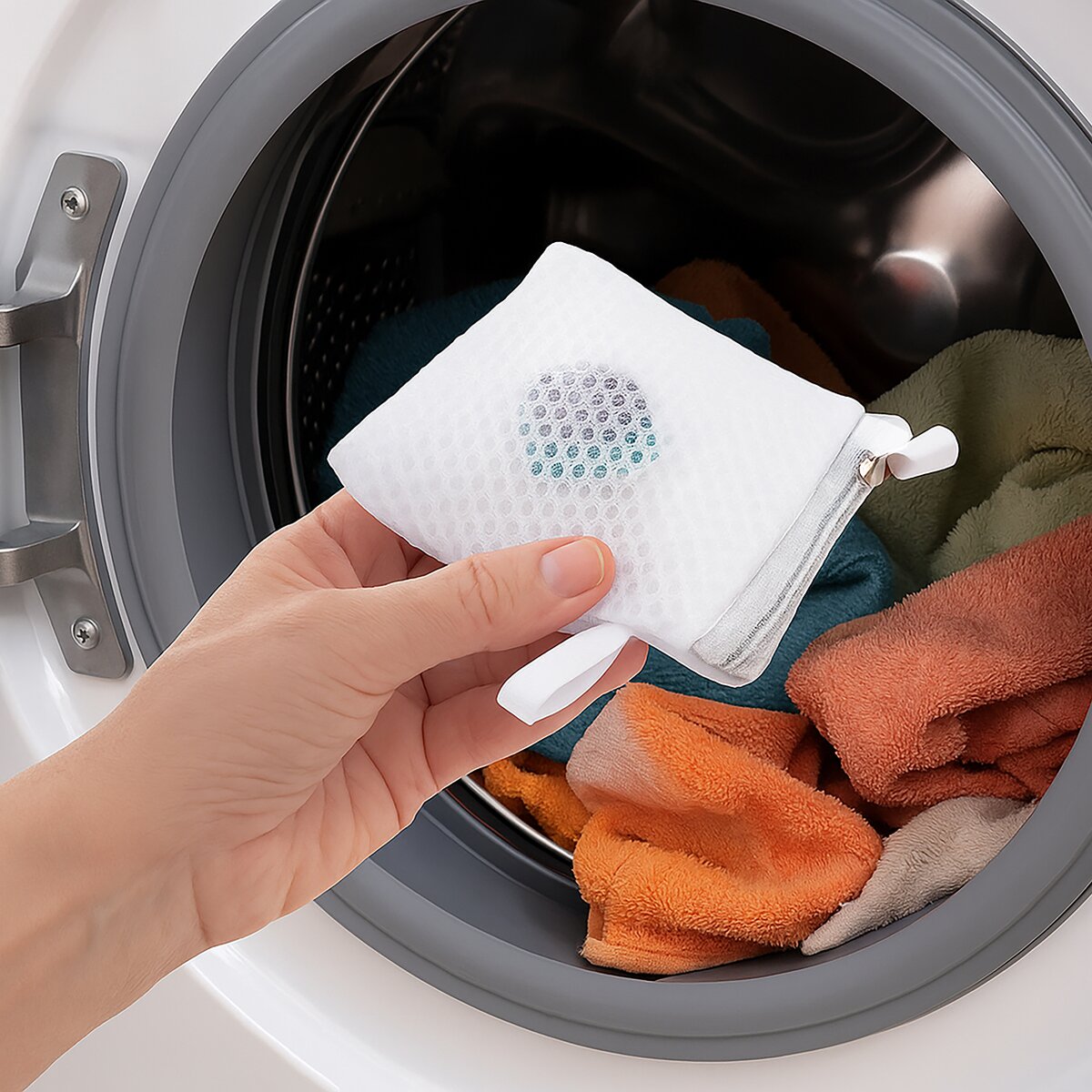 Vďaka tomuto vrecku sa vyvarujete zvyškom pracej kapsule v bubne. Stačí do neho vložiť kapsulu alebo vonné perly, zapnúť a vložiť do práčky, kde sa pri pracom cykle rozpustí.