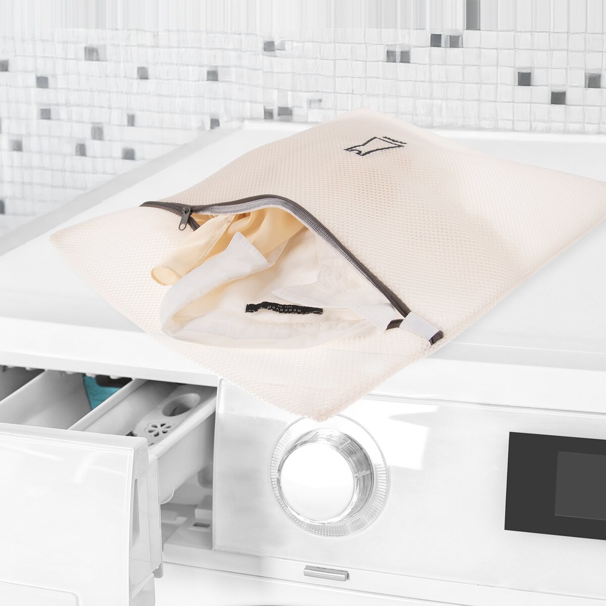 Navyše sa do neho zmestí aj obuv, určená na vypranie. Jazdec zipsu sa po zapnutí schová pod gumu všitú do zipsu, aby nepoškodil ostatnú bielizeň v bubne počas pracieho cyklu.