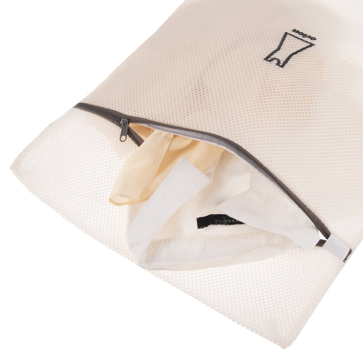 Kód produktu 531724Priedušné vrecko na pranie jemnej či drobnej bielizne má rozmer 50x40 cm, možno ho využiť aj ako vak na drobné odevy na cesty. Je uzavretý zipsom.