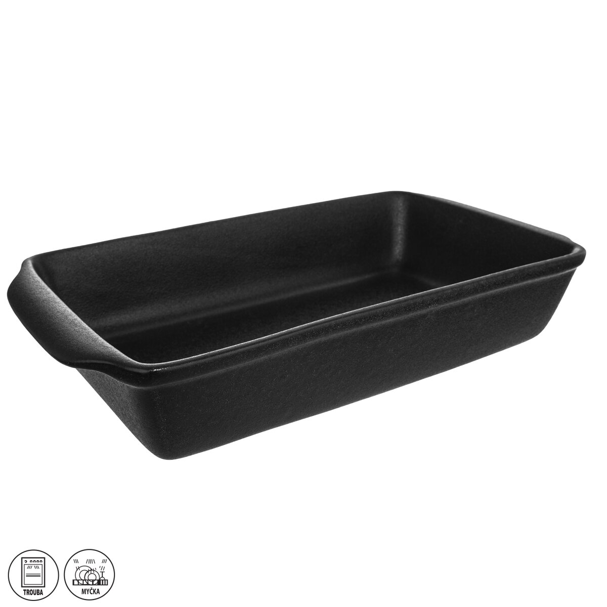 Kód produktu 124770Miska zapékací pro přípravu zapečených slaných i sladkých dobrot. Materiál: černý porcelán – hrubý povrch. Lze použít v troubě – do 230 °C, myčce na nádobí i chladničce. Rozměry: 40x21,5x7,5 cm.