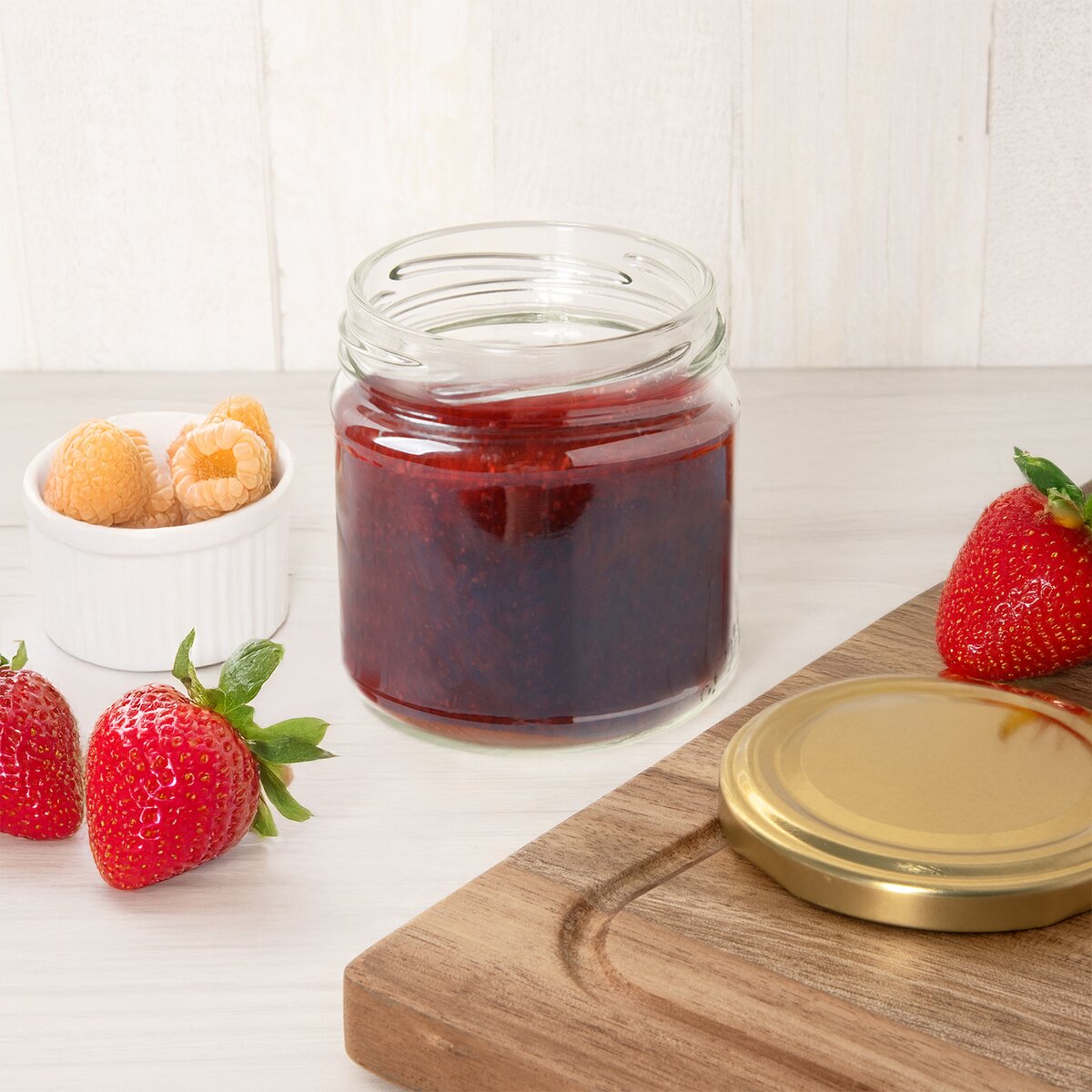 Kód produktu 129751Súprava 8 kusov okrúhlych zaváracích pohárov so závitom, s objemom 210 ml, je ideálna na zaváranie kompótov z drobnejšieho ovocia, marmelád, čalamád, hríbikov i paštét.