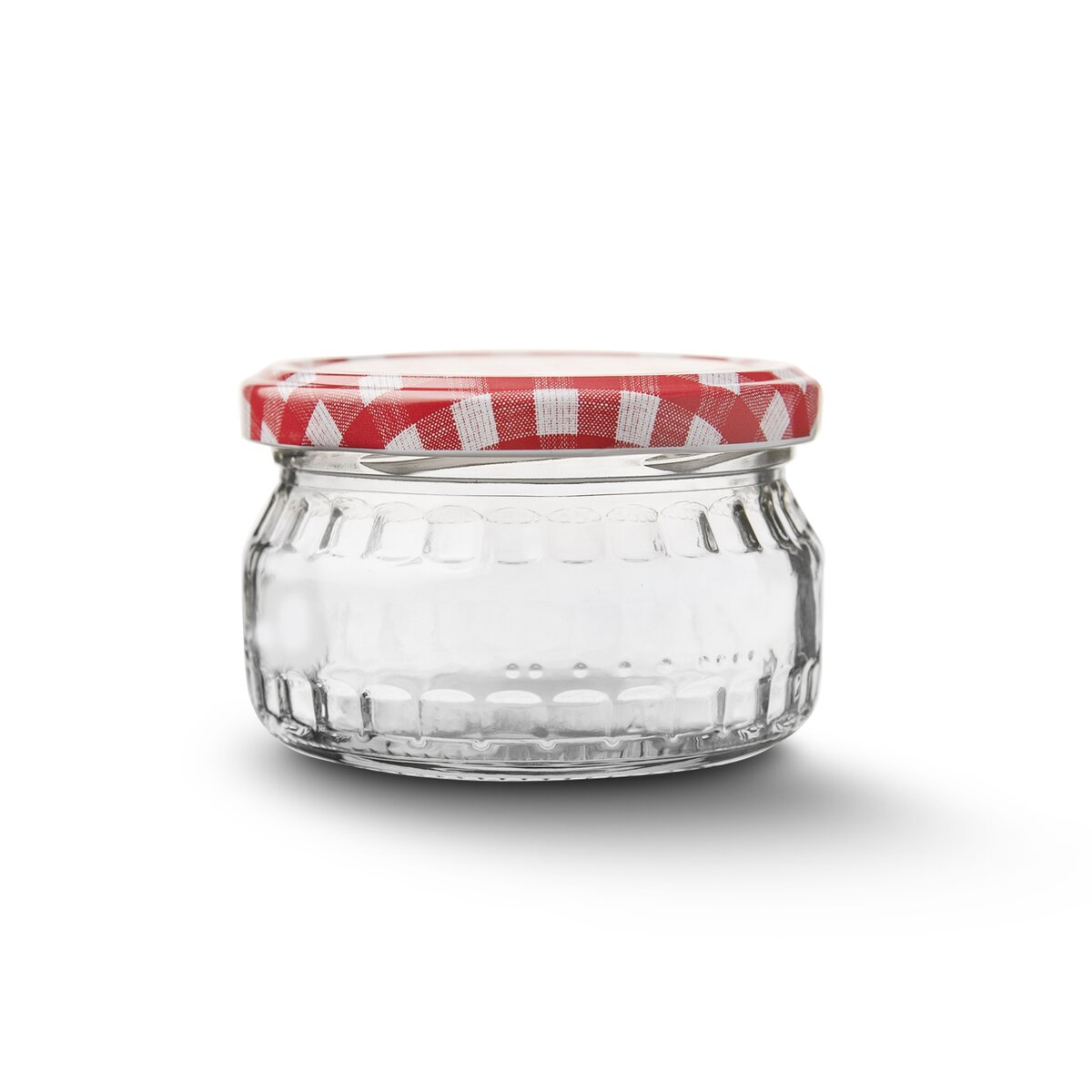 Kód produktu 126406Nižší guľatý zavárací pohár s objemom 210 ml, s károvaným viečkom na závit. Ideálne na zaváranie výživ, brusníc, domácich paštét a drobných lesných húb.