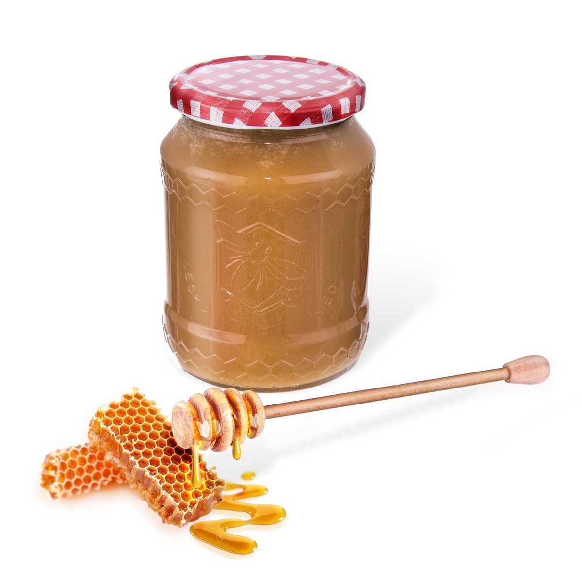 Tento guľatý pohár sa bude hodiť na uskladnenie kvetového aj lesného medu, ale aj na zaváranie doma vareného medu z kvetov púpav či fialiek. A také vlašské orechy v mede budú skvelou pochúťkou.